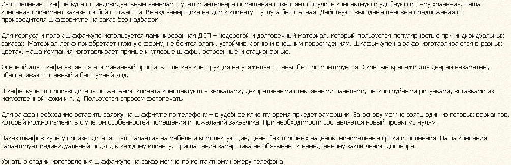 Шкафы на заказ по низкой цене в Москве и Московской обл. "Под Ключ".